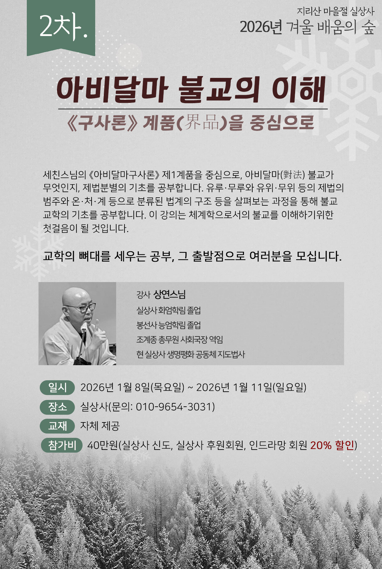 2025년 동안거 겨울 배움의 숲, 상연스님 - 아비달마 불교의 이해 : 《구사론》 계품(界品)을 중심으로